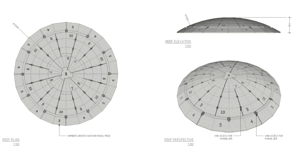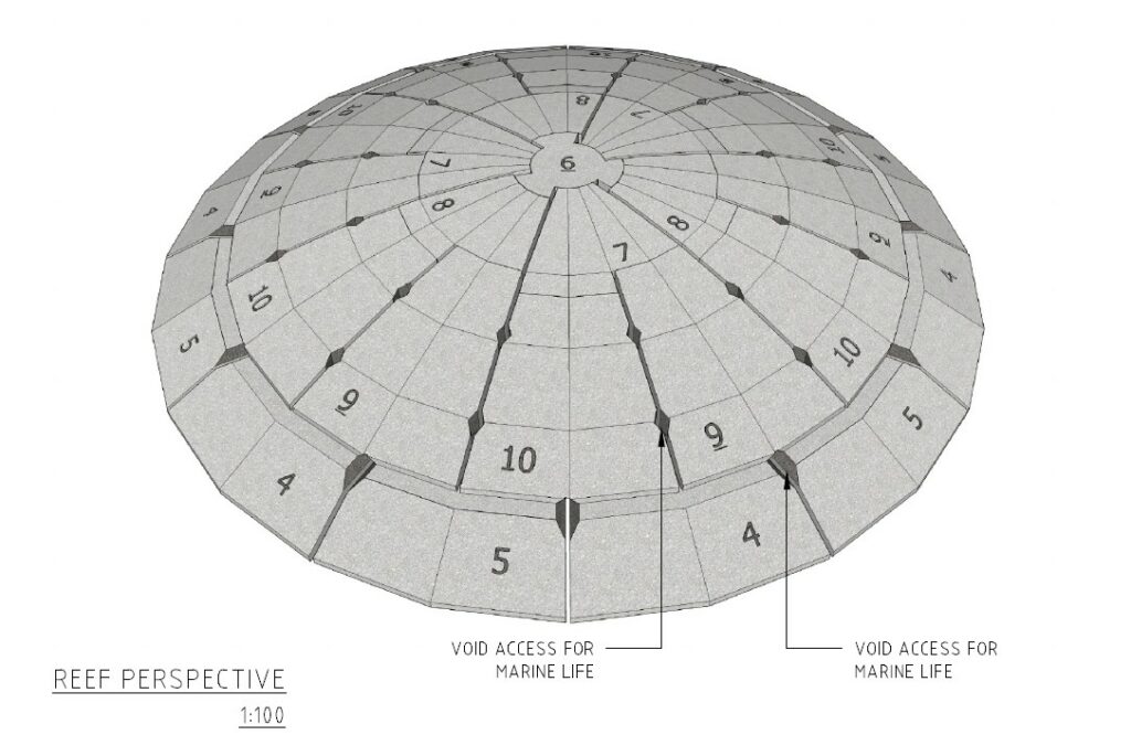 Waveco’s newly patented, modular concrete artificial surfing reef designs, redefines how artificial surfing reef technology, coastal protection and ocean ecology can coexist. Engineered with hydrodynamic precision, each multi piece interlocking concrete reef replicates natural reef formations—creating stable, consistent surf peaks, while fostering vibrant marine ecosystems.